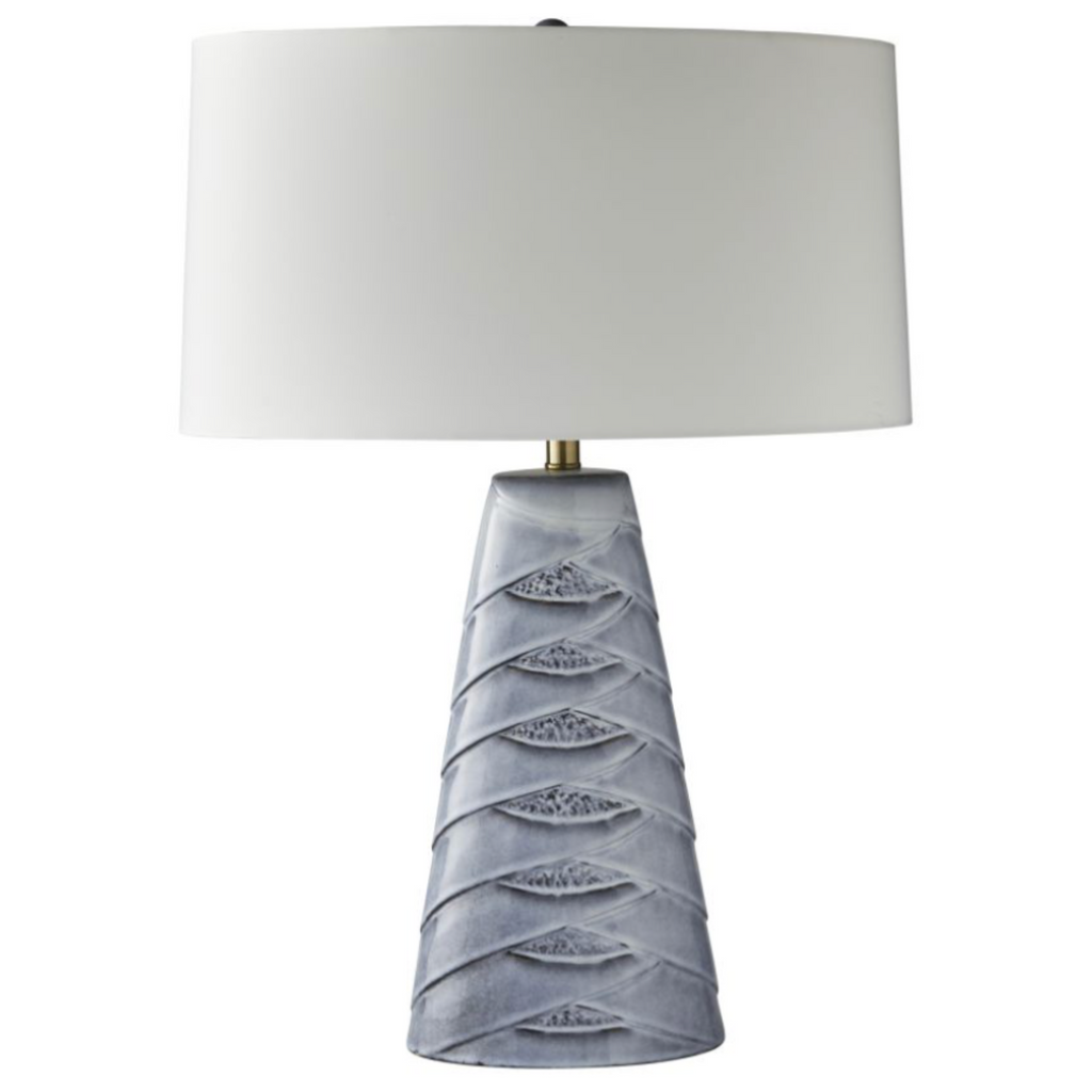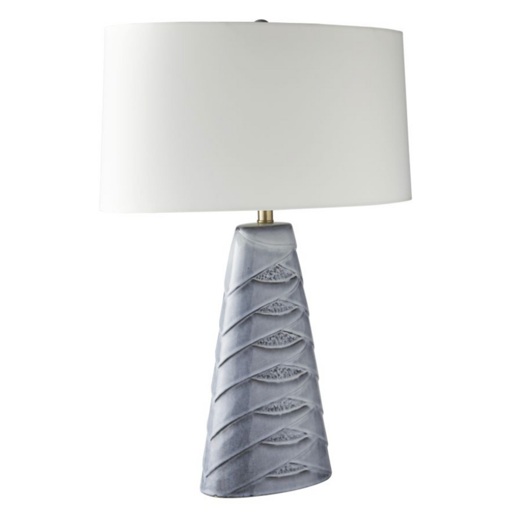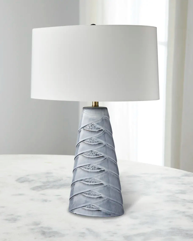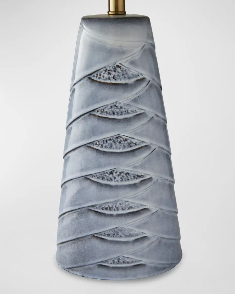 The shimmering scales and gills of a fish inform both the shape and the finish of our ceramic table lamp. Finished in a tempest reactive glaze, the Corpus’ flowing form was tapered to fit a smaller footprint.