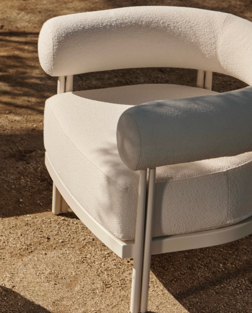 Harbour OutdoorThis sophisticated collection features special details like double cylindrical legs and curved edges – refined with luxurious upholstered bolster backs – that create soft sculptural silhouettes with understated elegance.