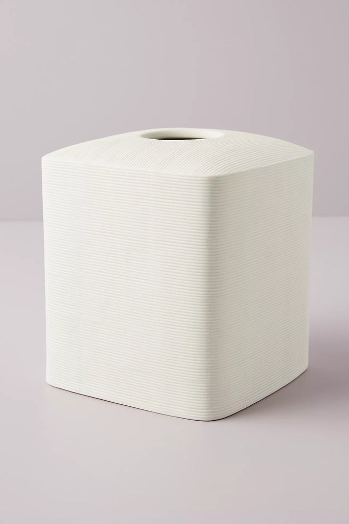 Crafted from porcelain, the Fillmore Bath Accessories feature a ribbed texture. Ivory on the outside and black on the inside, this accessory achieves the ultimate modern look.