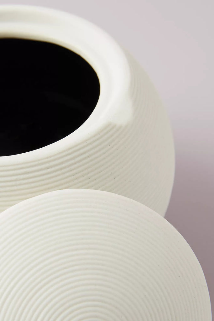 Crafted from porcelain, the Fillmore Bath Accessories feature a ribbed texture. Ivory on the outside and black on the inside, this accessory achieves the ultimate modern look.