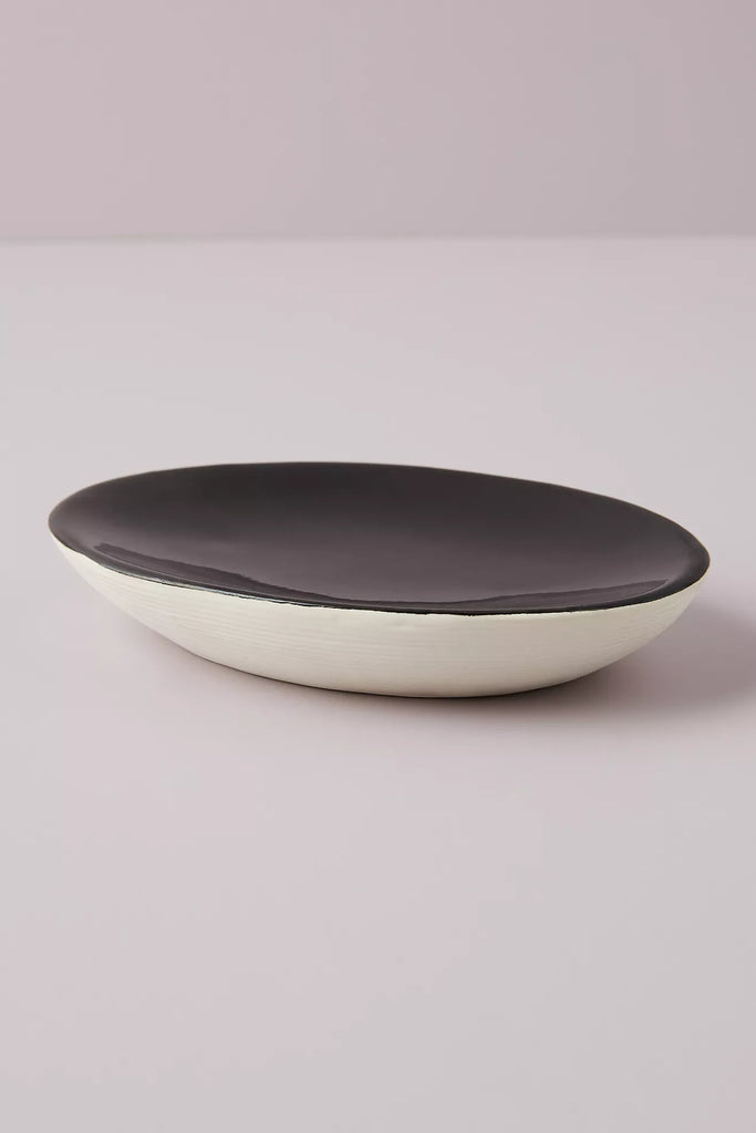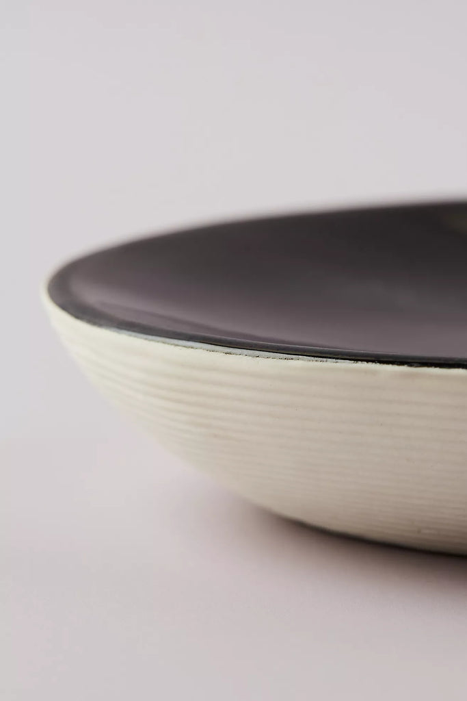Crafted from porcelain, the Fillmore Bath Accessories feature a ribbed texture. Ivory on the outside and black on the inside, this accessory achieves the ultimate modern look.