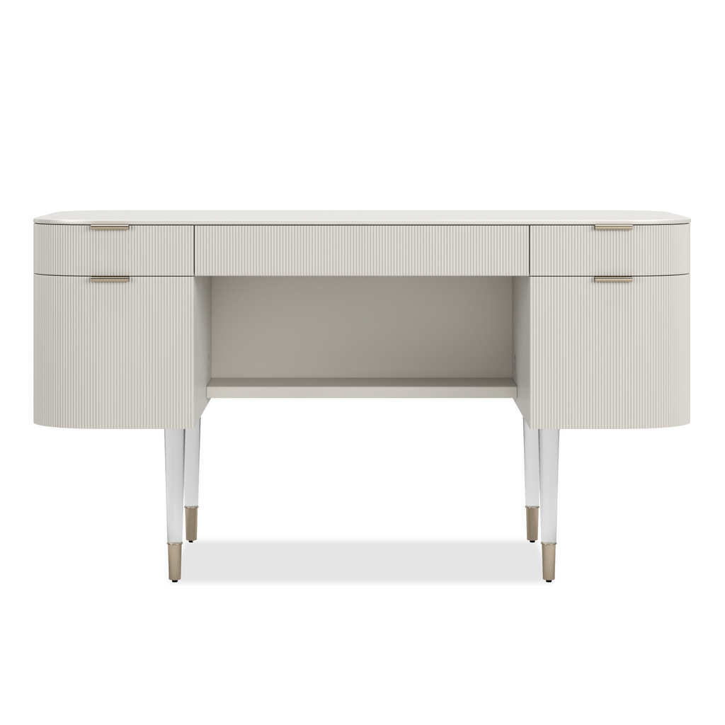 Lady Love Vanity / Desk, Matte Pearl/Gold, 54"W x 20"D x 29.5"H