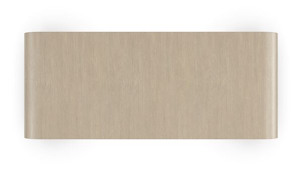 A calming rendition of organic fluidity, this cocktail table is defined by the beauty of Sun Drenched Oak and an ample top surface that gracefully waterfalls over either side. Its curved base adds movement and a tactile element in an innovative Textured Adobe finish.